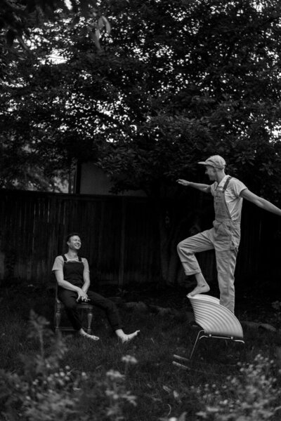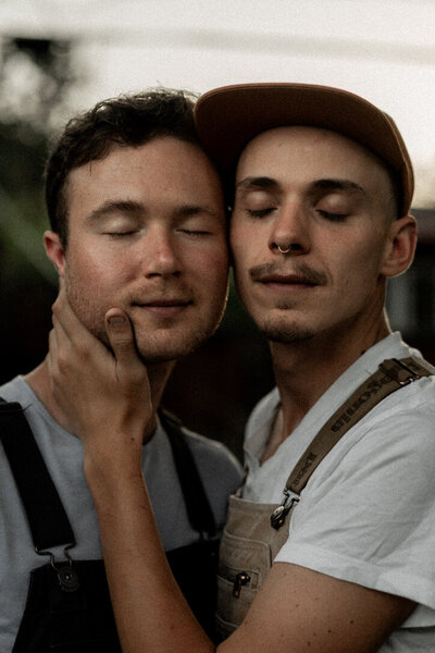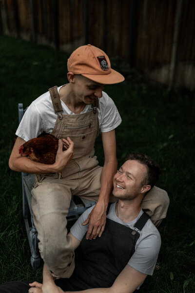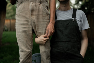 It was a BEAUTIFUL summer day in Boulder, Colorado and I was feeling inspired after a recent mentorship session. I was waiting for coffee at the farmers market and couldn't stop glancing at the adorable couple in line behind me. Granola, queer, easy-going, I could already tell they were literally perfect clients. I felt brave and asked if I could photograph them sometime. "Yes!" A few weeks later we ended up playing in Will's garden and made some of my favorite photos of all time.